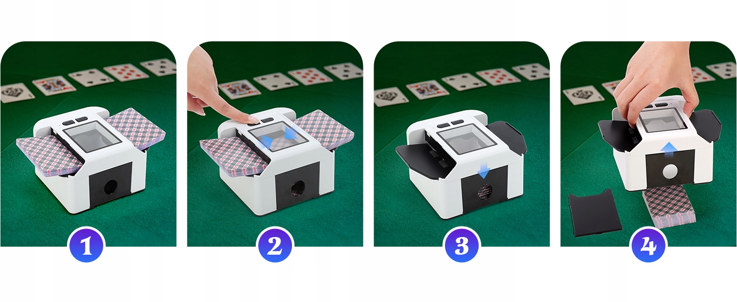 ♥️Оно может перемешивать от 1 до 2 колод карт одновременно, что идеально подходит для таких игр, как Техасский Холдем, Бридж, UNO, Блэкджек. и т. д.