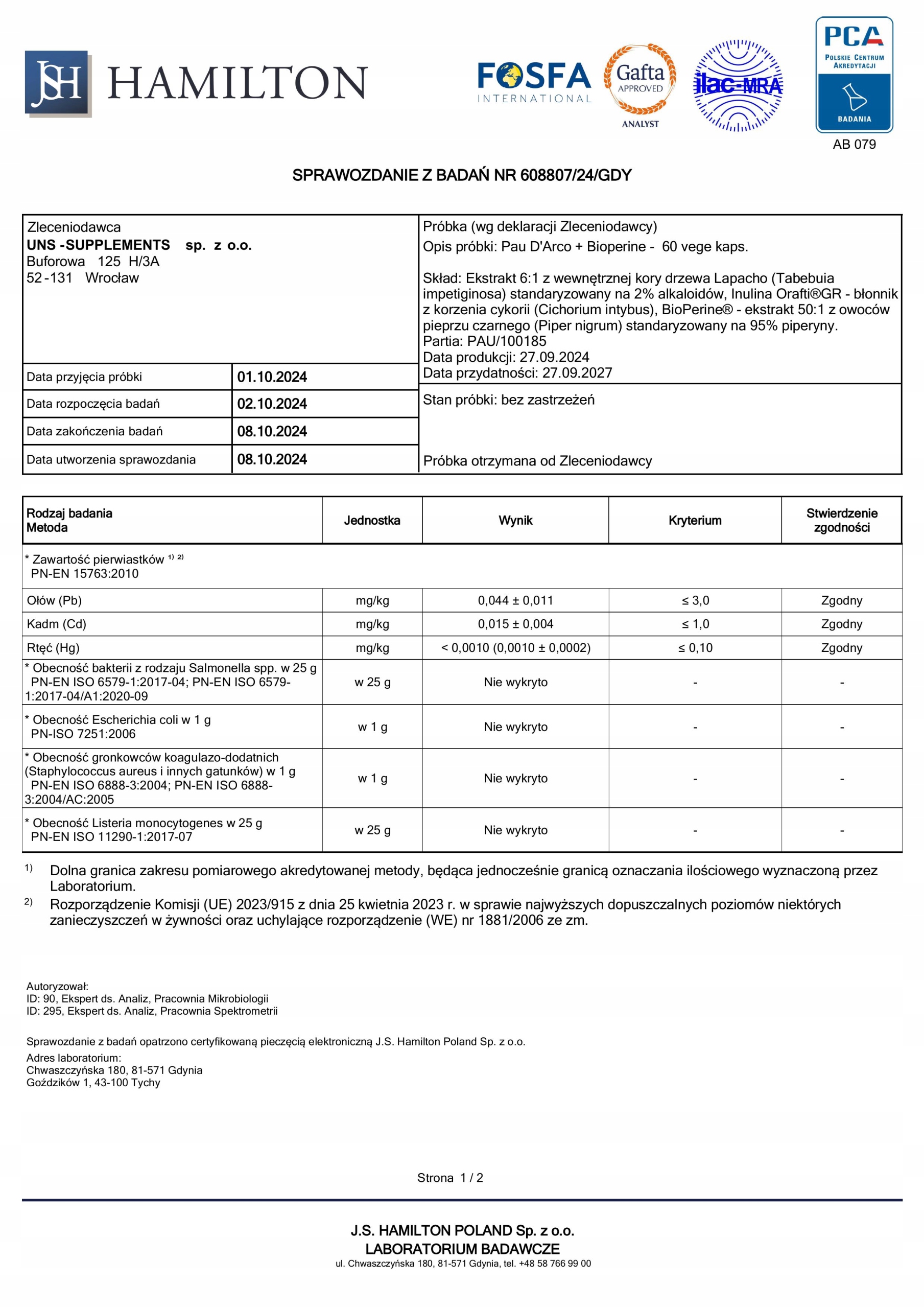 UNS Pau Darco + Bioperine содержит ингредиенты, которые: