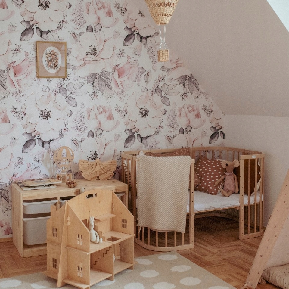 Княшка Уолдин изменяется по мере необходимости - она имеет регулируемую высоту и демонтированную переднюю часть. Благодаря этому стандартная детская кроватка превращается в кроватку для растущего ребенка, пока она, наконец, не станет ручкой и полом в стиле Монтессори.