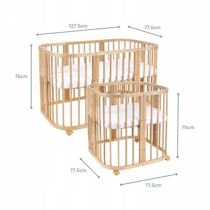 Если вы сосредоточитесь на много -функциональном, то 7 в 1 кровать станет вашим спасением. Это модель на колесах, которая гарантирует мобильность, благодаря которой вы можете легко перенести их в любое место. Кроме того, это кроватка и кровать в одной, потому что ее можно использовать на разных этапах жизни, от новорожденного до более 8 лет. Деревянная кроватка с детским матрасом может быть отрегулирована и объединена в конструкции, адаптированные к нынешним потребностям вашего малыша. Мы гарантируем, что этот тип предмета мебели будет отличным решением для ваших предпочтений!