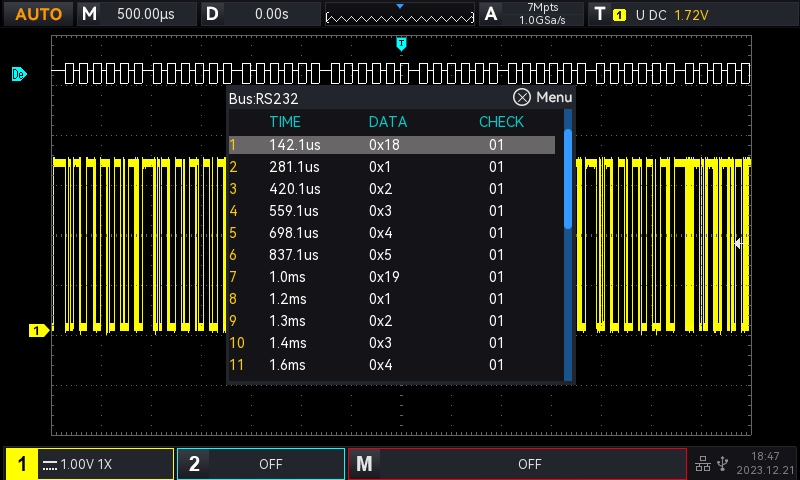 Декодирование аппаратного обеспечения в режиме реального времени с полной записью памяти, анализ высокой эффективности: на глубине памяти ниже 56 MPT, скорость декодирования 3 протоколов (RS232/ UART, I2C, SPI) достигает MilliseConds, что является 100 раз, чем в программе, и значительно улучшает анализ.
