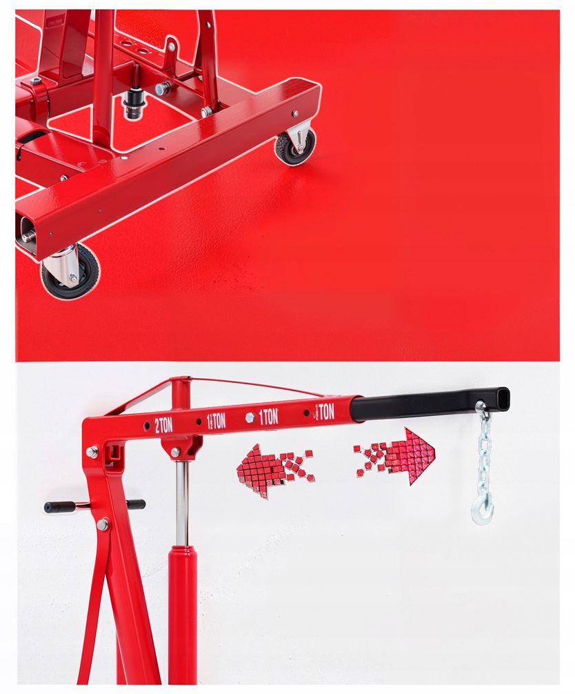 Этот кран предназначен для работы при подъеме тяжелых элементов, его максимальная грузоподъемность составляет 2 тонны. Это хорошо работает при вытяжении таких деталей, как автомобильные двигатели или коробки передач. максимальная грузоподъемность 500 кг). Благодаря этому крана предоставит вам максимальную удобную работу, даже с тяжелыми элементами. Полем Он предназначен только для поднятия загрузки/в одном направлении. Привод не имеет крепления безопасности, которые могут сохранить вес. предоставить ему дополнительную поддержку как можно скорее. Устройство не может быть использовано в качестве весовой поддержки