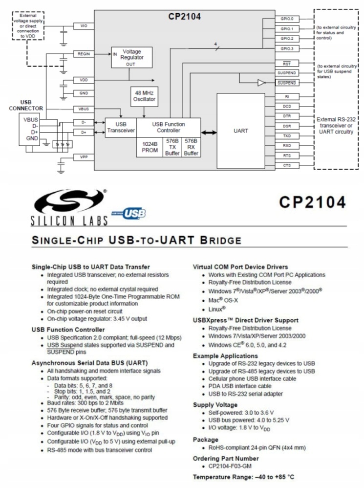 ОДНОЧИПОВОЙ МОСТ USB-UART CP2104 (замена CP2102)