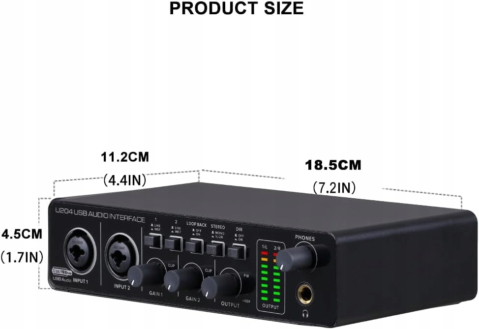 Измерение класса - Во время записи и смешивания нет ничего важнее, чем оптимальный объем. Аудио -разъем U204 обеспечивает четкие и подробные уровни для всех входов и выходов. Наслаждайтесь контролем громкости и профессиональной обратной связью, чтобы сделать ваш голос идеальным.