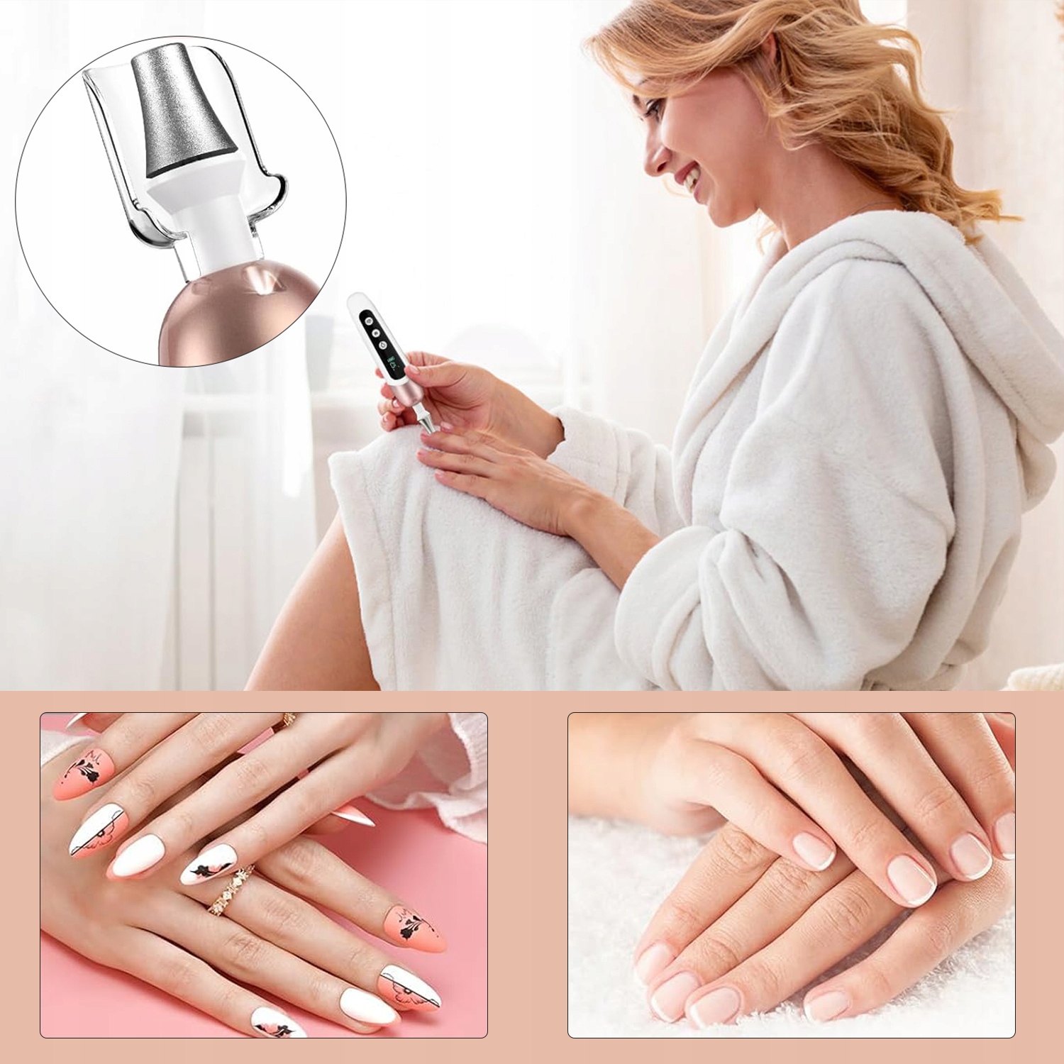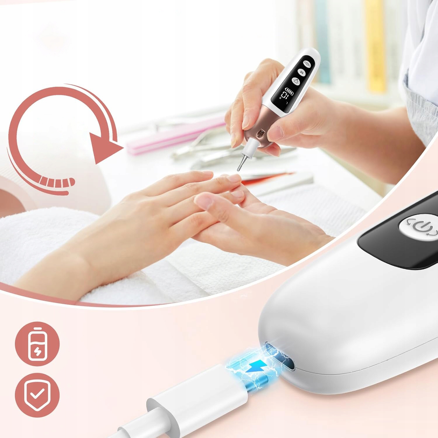 💅 Профессиональный электрический файл ногтей с регулировкой скорости и светодиодной подсветкой. Благодаря эргономическому дизайну и функции изменения направления вращения (слева/справа), он обеспечивает точный уход за ногтями о руках и ногах дома.