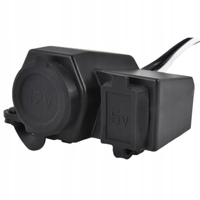 12 В более легкий разъем и порт USB, для использования в мотоциклах, мопедах, квадроциклах и скутерах. Гнездо, благодаря встроенным в конце концов, является водонепроницаемым.