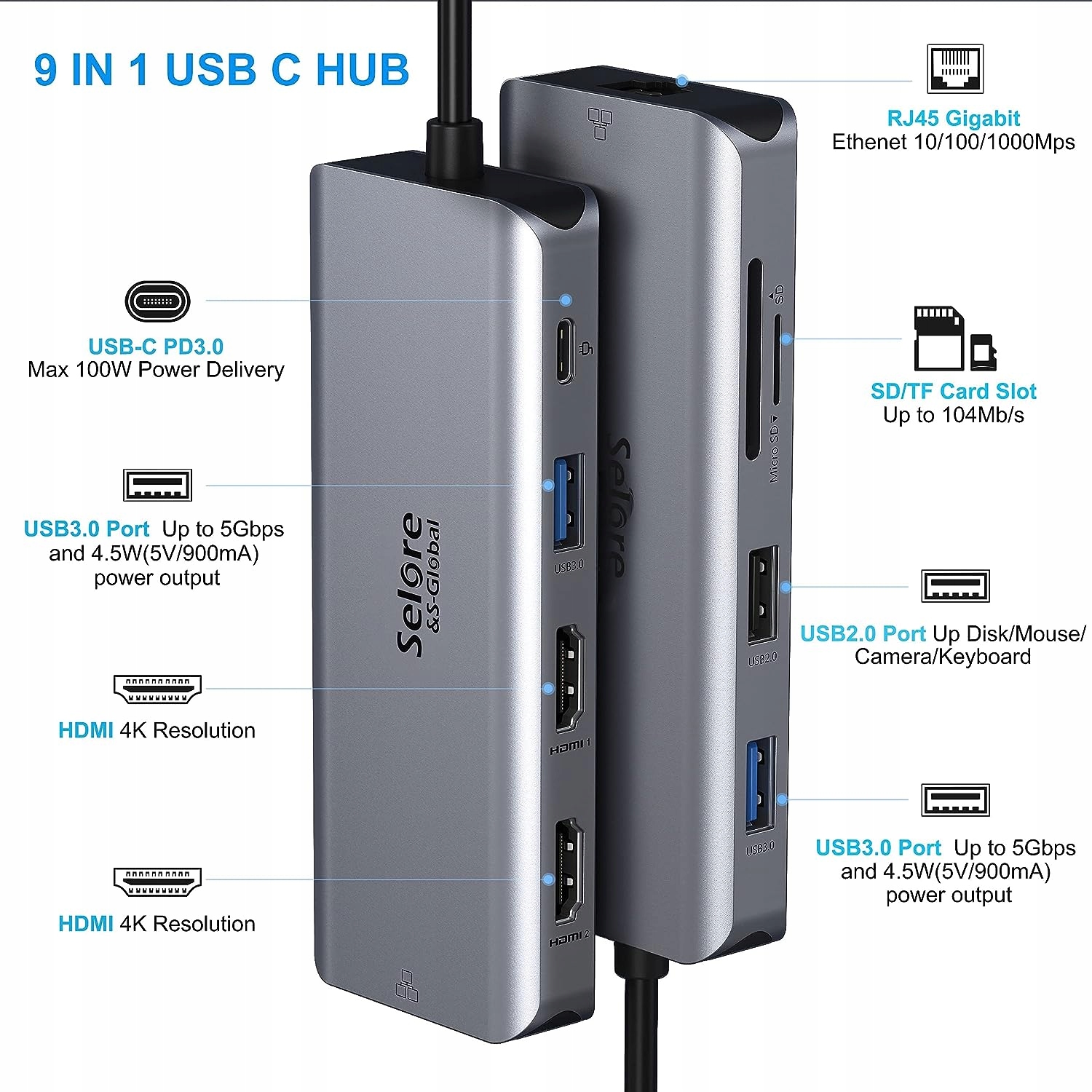 USB-C HUB ДОК-СТАНЦИЯ HDMI 9 в 1 Selore&S-Global