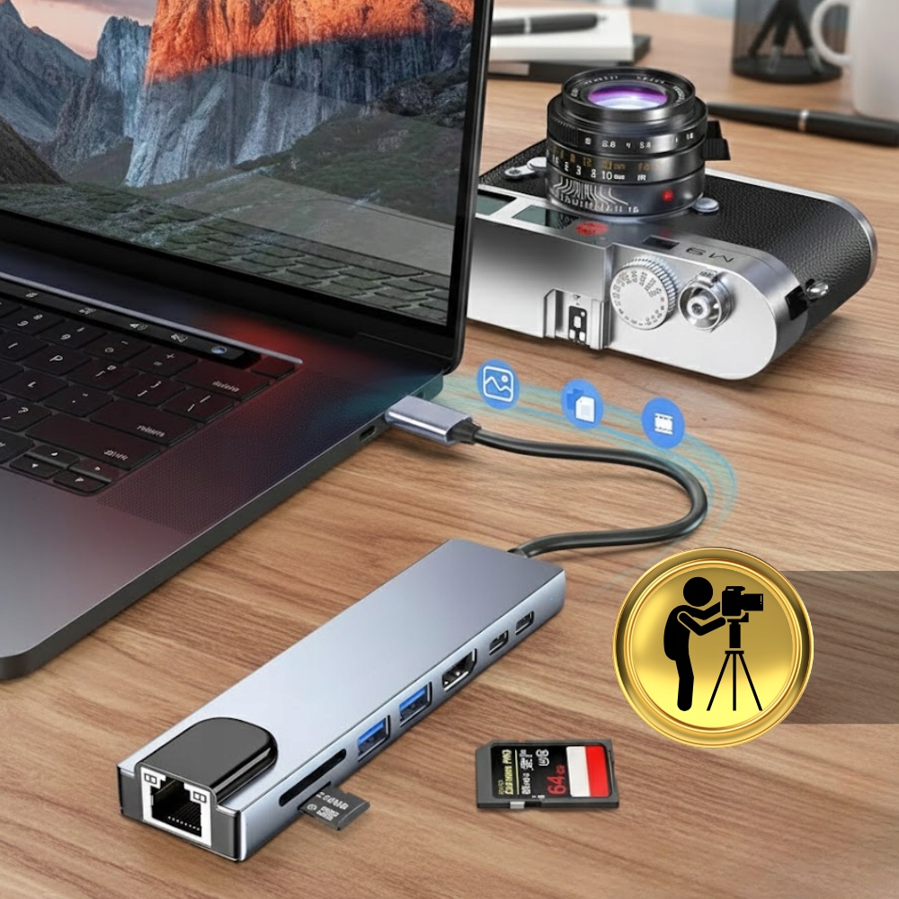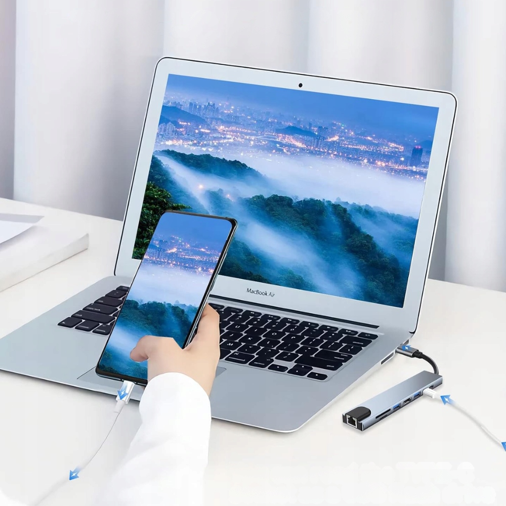 USB-C 8-in-1 HUB — это современный многофункциональный адаптер, который легко расширяет возможности ноутбука, планшета или смартфона. Благодаря множеству портов в одном компактном корпусе вы получаете удобство работы, развлечений и быструю передачу данных - дома, в офисе и во время путешествий.