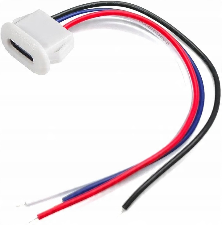 Мы представляем компактный гнездо USB-C (массив) в элегантном белом цвете, созданный для эстетического и твердого монтажа в корпусах и панелях управления. Продукт оснащен двумя способами в форме (красный источник питания, черная - масса), что позволяет легко подать питание 5 В для различных электронных устройств.