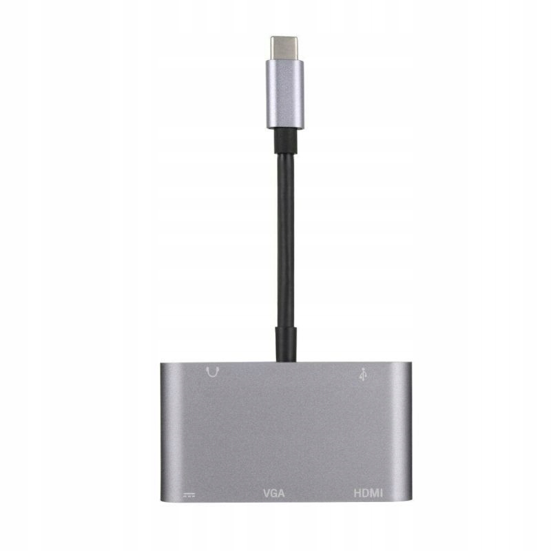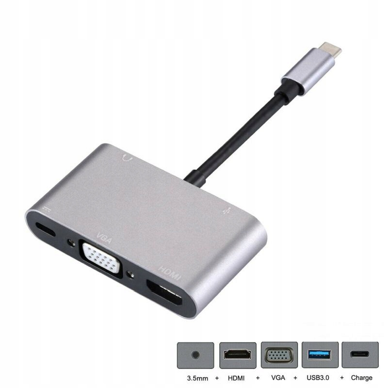 Адаптер адаптер от USB-C 3.1 до VGA + HDMI + PD + USB3.0 + Mini Jack 3,5 мм.