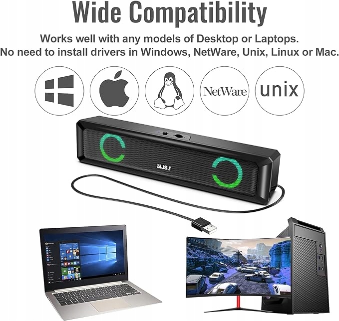 Совместимость с компьютерами Windows. USB-динамик для ПК отлично работает с компьютерами Windows различных марок (Vista/7/8/10). Он также совместим с некоторыми устройствами Mac OS и Chrome OS, если для их звуковой карты установлена последняя версия аудиодрайвера. Кроме того, USB-динамик может работать даже с некоторыми устройствами Xbox и PlayStation 4.