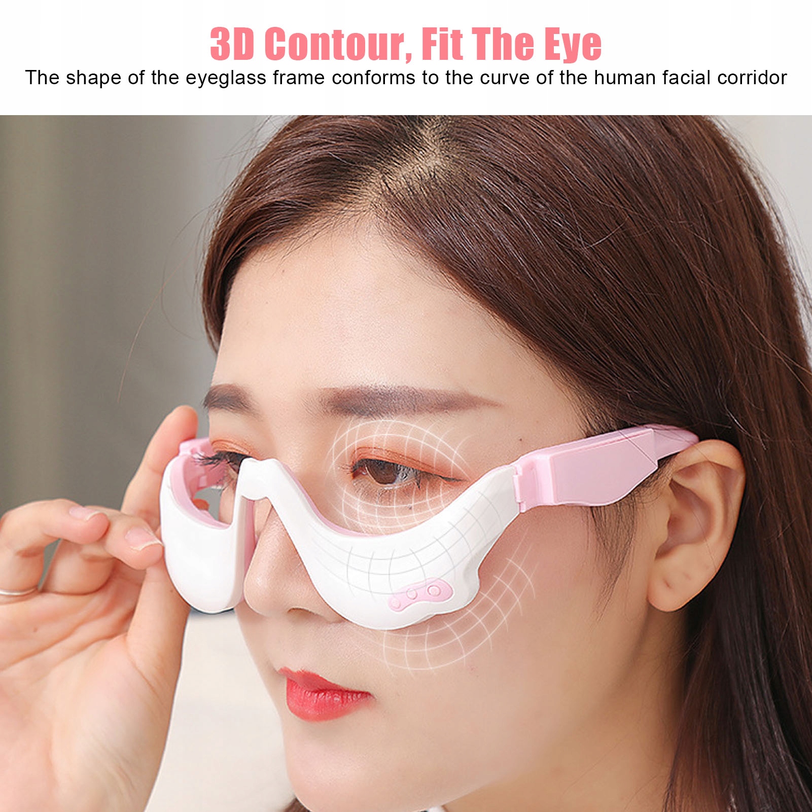 2. Эргономичный дизайн: массажер для глаз соответствует форме контура человеческого лица в оправе очков, красивая наука, удобно носить с собой без нагрузки.