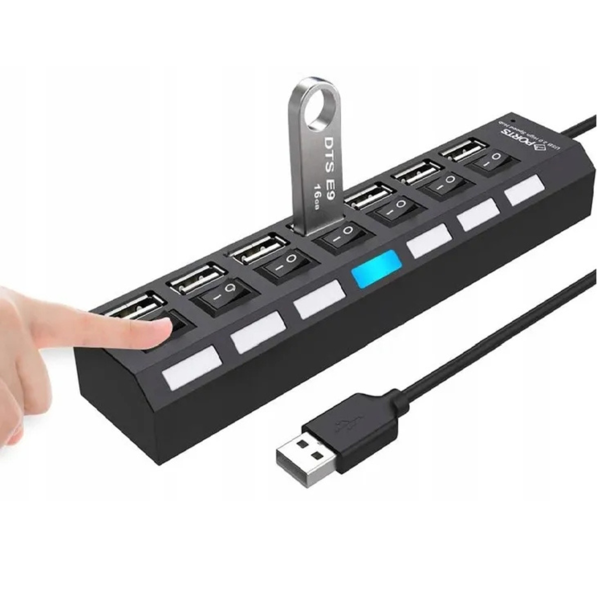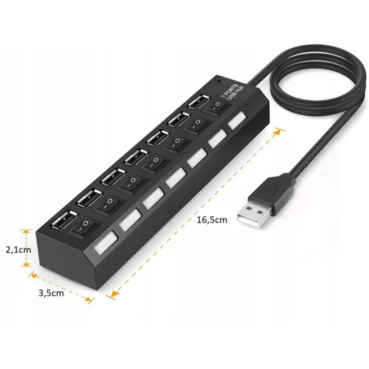 Модель: 7-портовый USB-концентратор с переключателями.