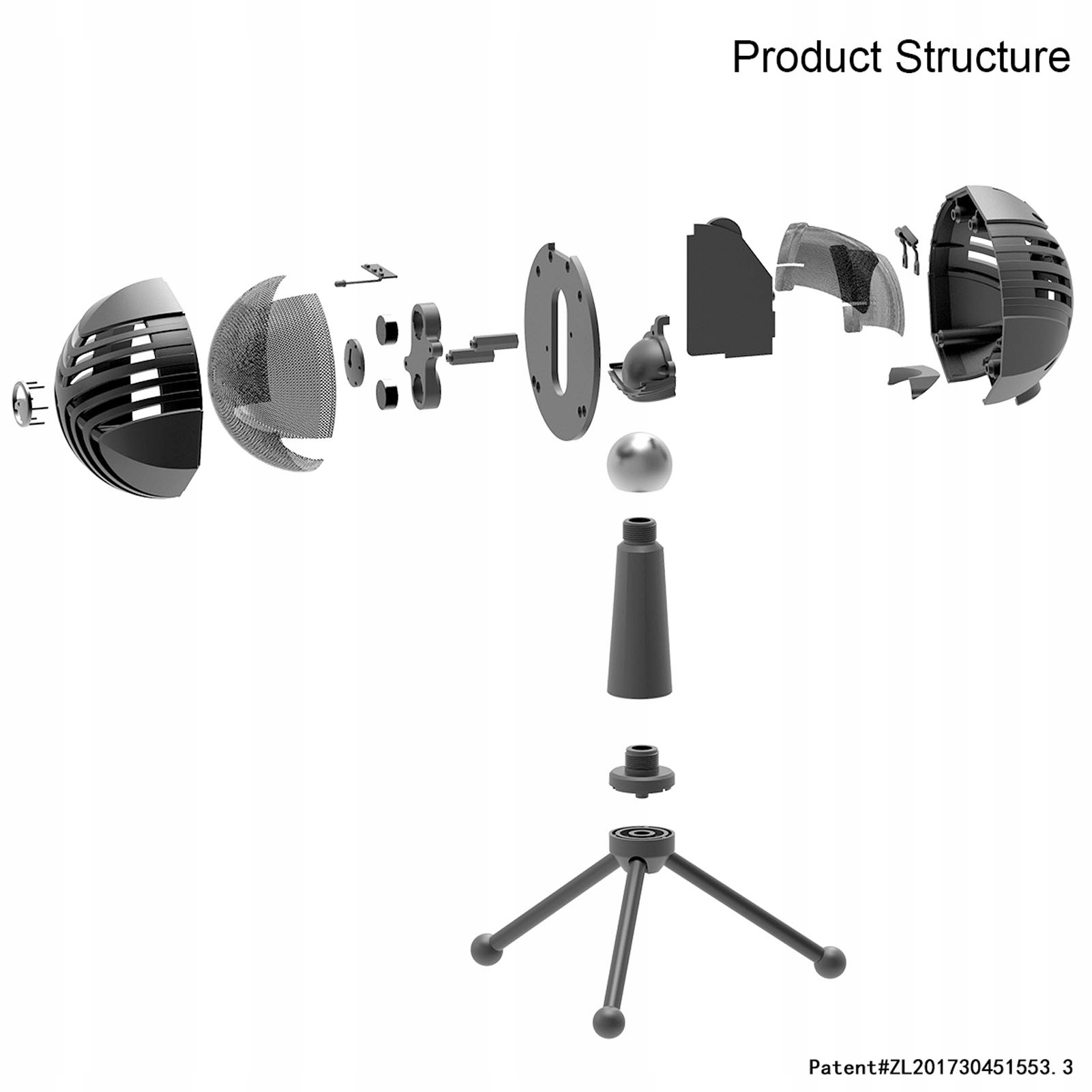 1. Вращение на 360 градусов: подставка для конденсаторного микрофона соединена универсальным валом и может вращаться на 360 градусов, чтобы регулировать угол захвата по желанию. Подставка является съемной и складной, имеет функции защиты от опрокидывания и ударов, что обеспечивает большую гибкость и устойчивость.