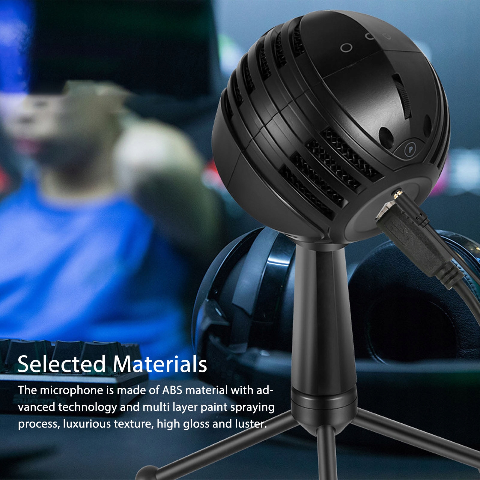 4. Простое управление: конденсаторный микрофон оснащен одной кнопкой отключения звука и светодиодным индикатором, который прост и удобен в эксплуатации. Между тем, он также поддерживает функцию выхода на наушники и регулировку громкости наушников.
