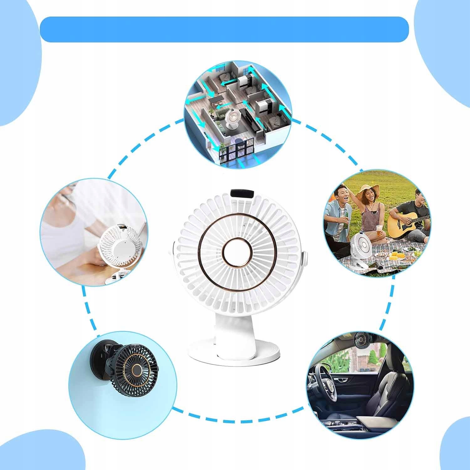 USB НАСТІЛЬНИЙ ВЕНТИЛЯТОР 360° 2400 MAH З ЗАЖИМОМ НА ЛІТО
