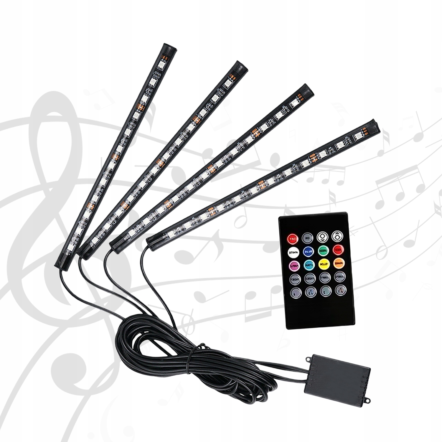 Светодиодное освещение для вашего автомобиля — это не только приятные цвета, но и интерактивное удовольствие! Благодаря встроенному датчику звука устройство может определять музыку, играющую на вашем радио, и соответствующим образом регулировать освещение в соответствии с режимом, выбранным на пульте дистанционного управления.