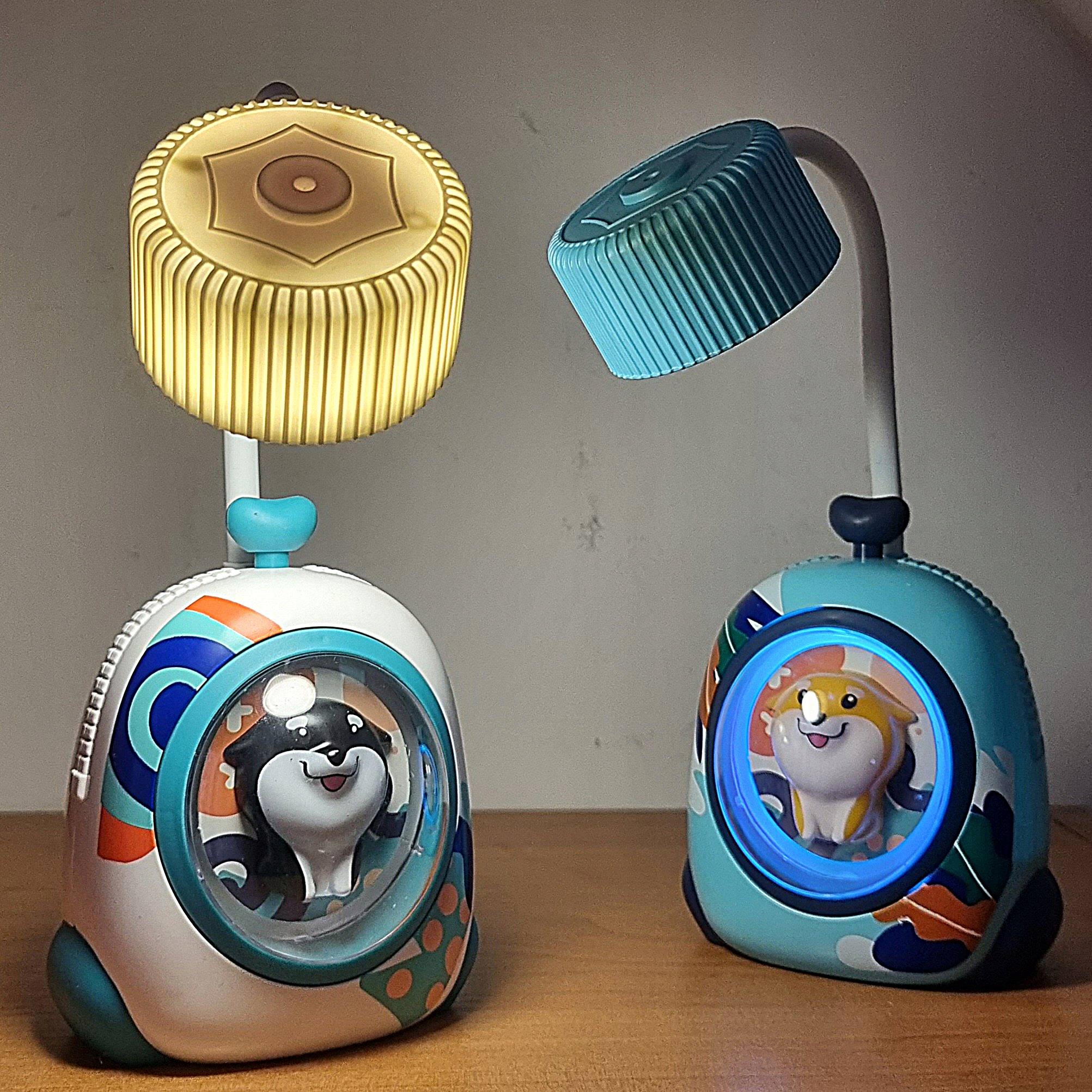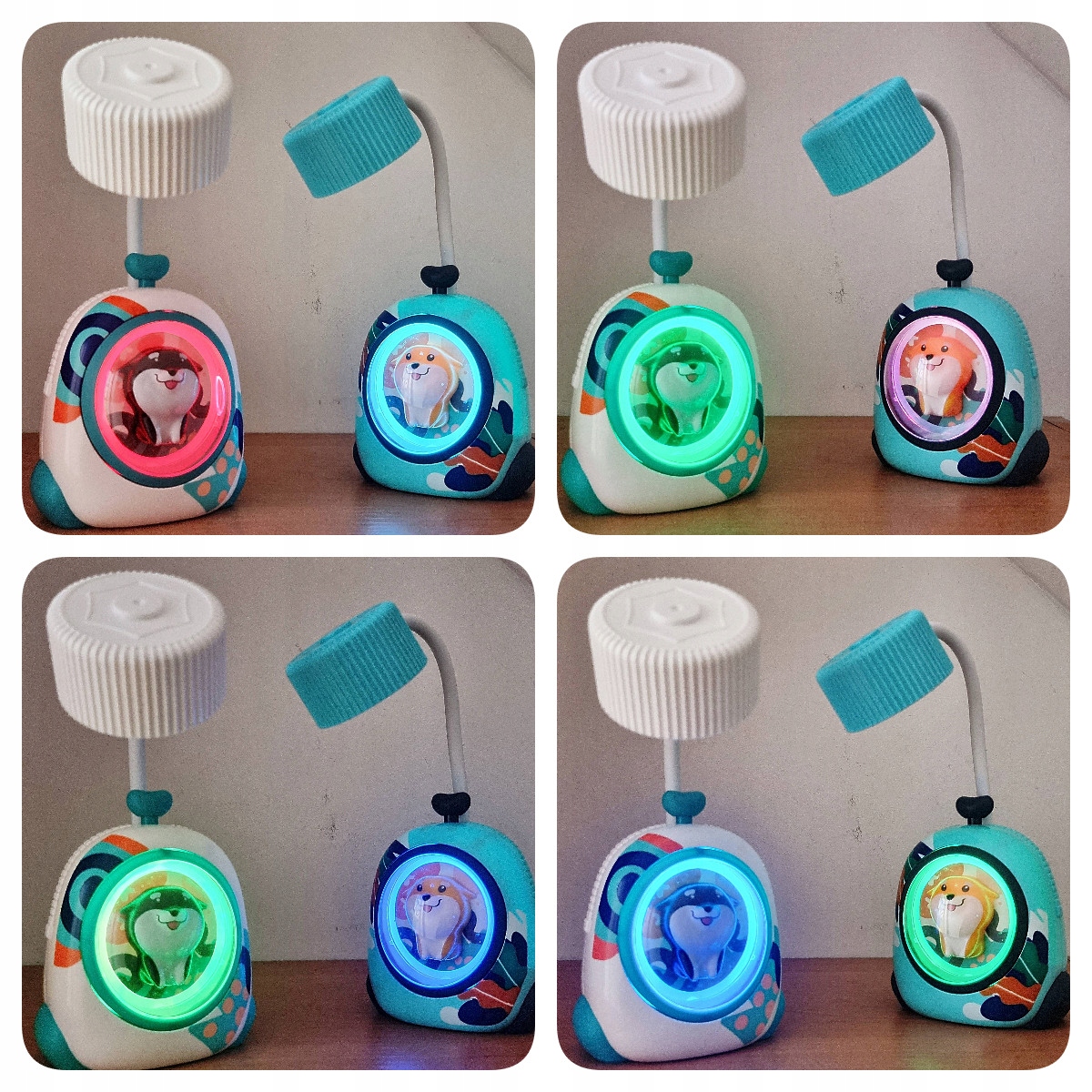 Очень практичный светильник. Он идеально подходит для детей в качестве ночника и в то же время отлично работает на столе в качестве лампы для учебы. Комфорт использования светильника повышается за счет гибкой ножки, которая сгибается в разные стороны, что позволяет регулировать угол освещения. Лампа имеет двухпозиционный переключатель, при однократном нажатии включается меняющийся свет в собачьей будке (с красного через зеленый, синий, синий...), а при переключении второй раз включается верхний свет. p>