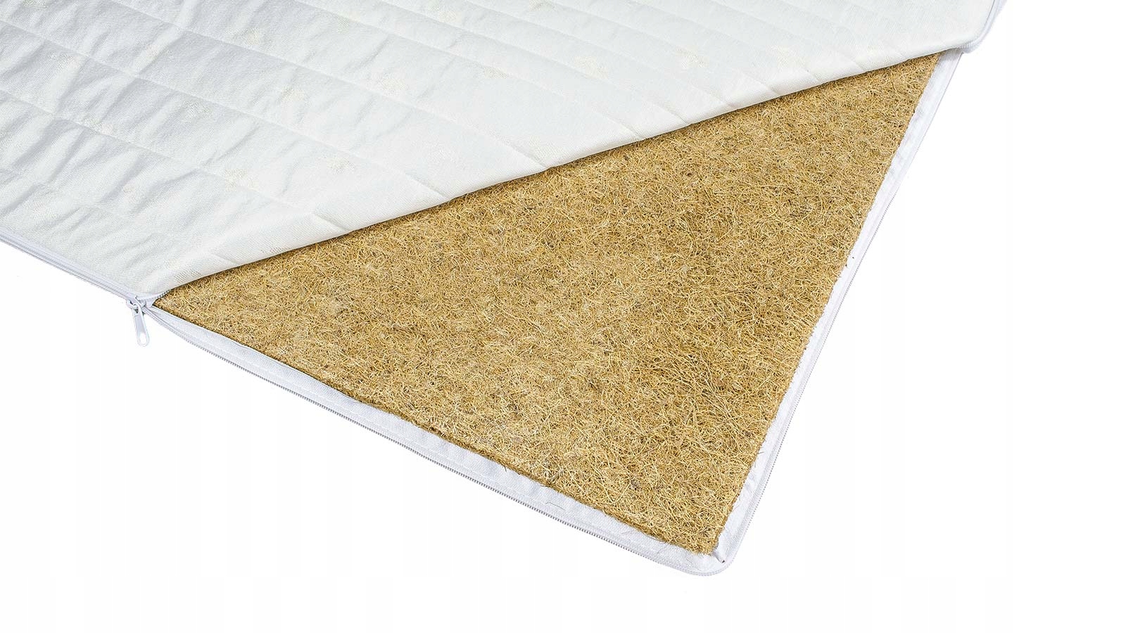 Наматрасник односторонний, имеет основу из кокосового мата. Кокосовый коврик предназначен для упрочнения поверхности матраса и уменьшения эффекта «проваливания» слишком мягкого матраса. Кокос обладает оздоровительными свойствами. Полученная твердая поверхность облегчает засыпание и предотвращает развитие пролежней и болей в позвоночнике, связанных с повышенным напряжением мышц после ночи, проведенной на слишком мягкой поверхности. Кокосовый коврик улучшает циркуляцию воздуха в матрасе, что предотвращает образование плесени и грибков. Циркуляция воздуха в постели дает нам ощущение свежести и уменьшает выделение пота. Эти свойства гарантируют отличную поддержку позвоночника и высокий комфорт сна.