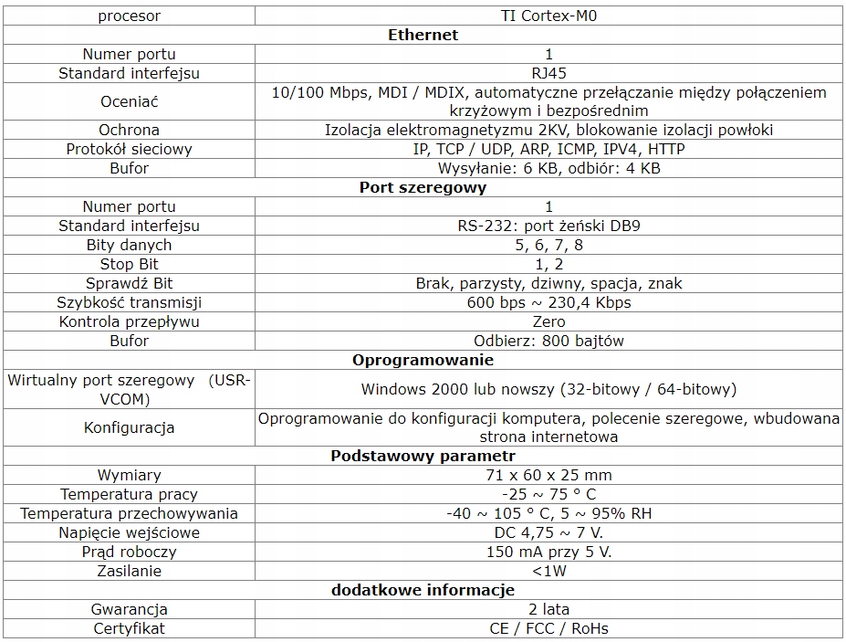 - поддержка виртуального последовательного порта и предоставление соответствующего программного обеспечения USR-VCOM.