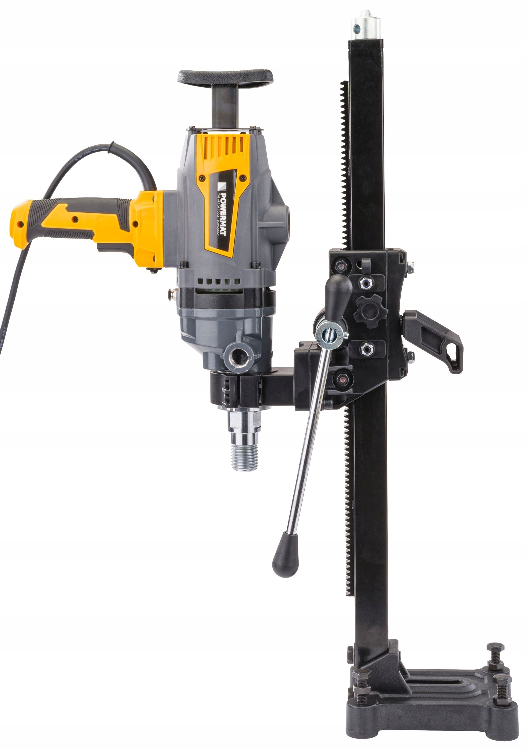 Буровая установка по бетону марки POWERMAT мощностью 2600 Вт представляет собой инструмент, предназначенный, в частности, для бурения: мокрый, что повышает безопасность использования и эффективность по сравнению с конкурирующими моделями. Устройство достигает скорости 1500 оборотов в минуту, а сверло монтируется на держателе диаметром 1 ¼ дюйма. Позволяет проделывать отверстия максимальным диаметром 195 мм. Буровая установка POWERMAT – прочное устройство, обеспечивающее быстрый результат в сложных условиях. В комплект входят практичные аксессуары например штатив, плечевой кронштейн и крепежные винты.