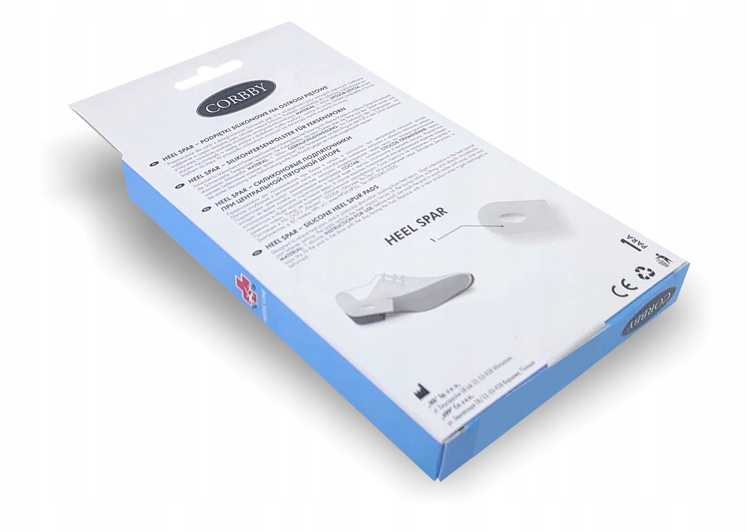 Современные пяточные шпоры пяточные шпоры — медицинский продукт польской компании Corbby. Пяточные шпоры из медицинского силикона, используемые при пяточных шпорах, позволяют правильно расположить пятку. относительно земли. Выемка в центральной части пятки исключает болезненный контакт пораженного участка с обувью. Предназначен для стоп людей, больных сахарным диабетом и тех, у кого проблемы с правильным кровообращением в нижних конечностях.