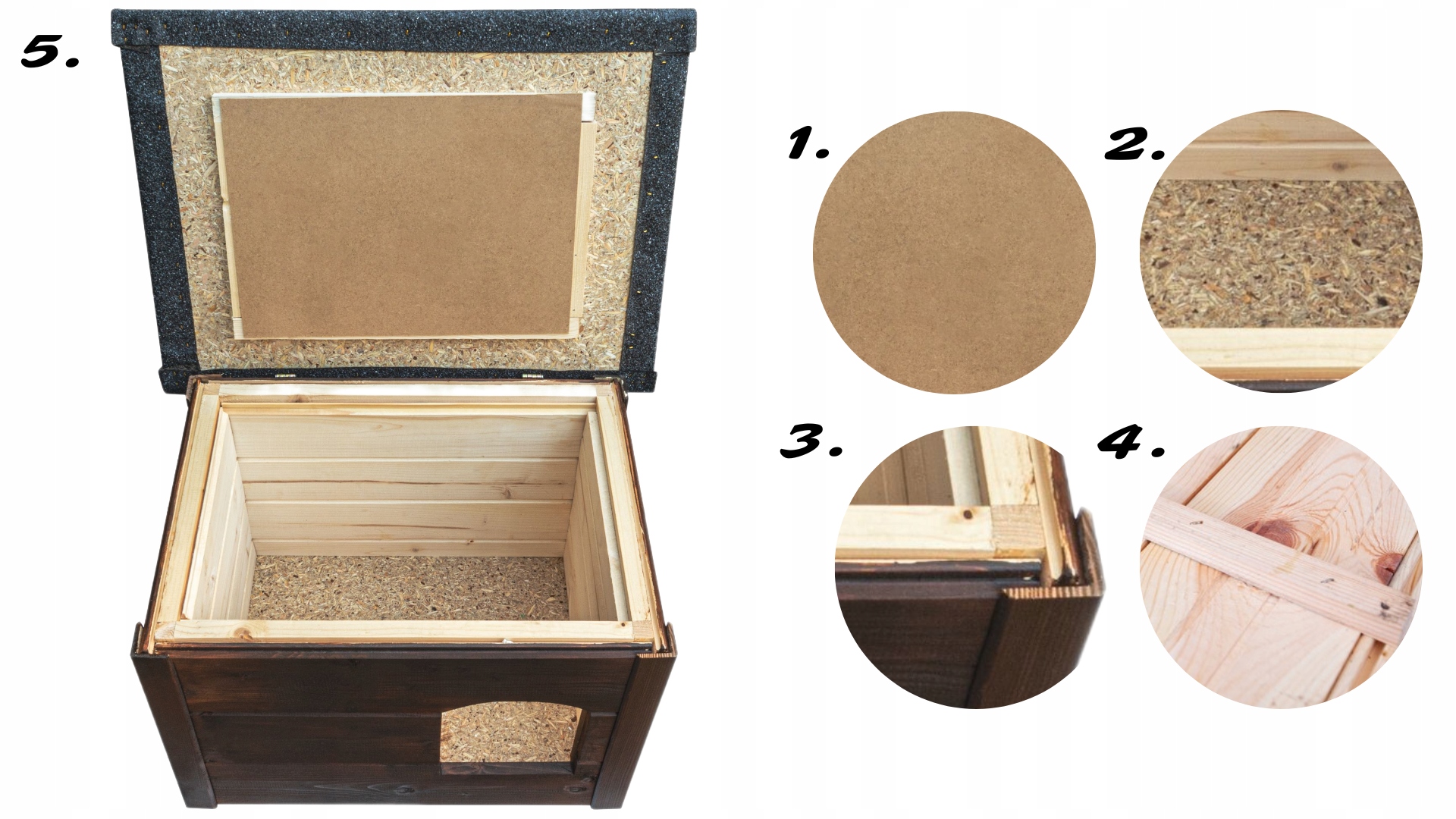 Питомник тщательно утеплен, что обеспечит тепло и изоляцию даже в холодные дни. Ваша кошка сможет проводить время внутри, не беспокоясь о температуре. Кроме того, тщательно выполненная изоляция и прочная древесина делают конуру готовой к любым погодным условиям.