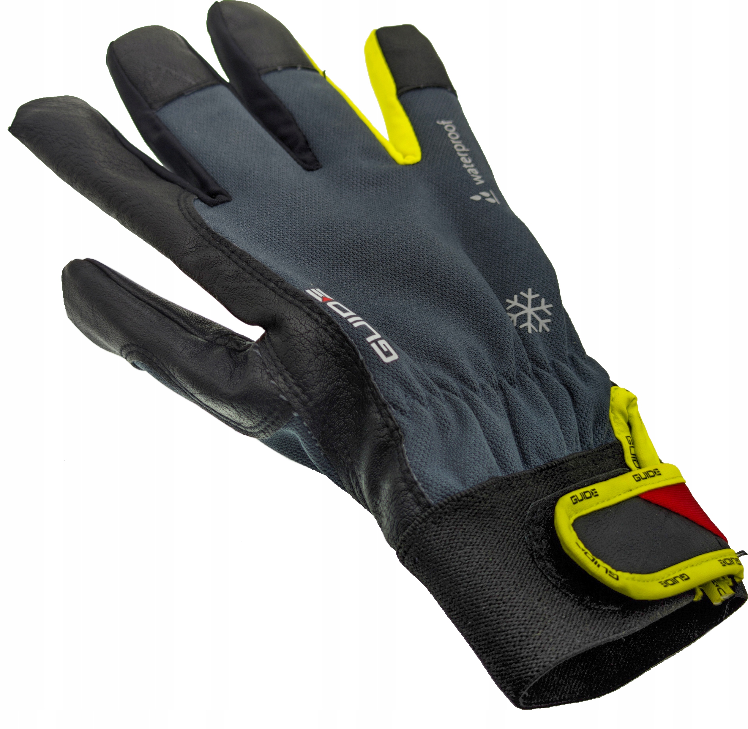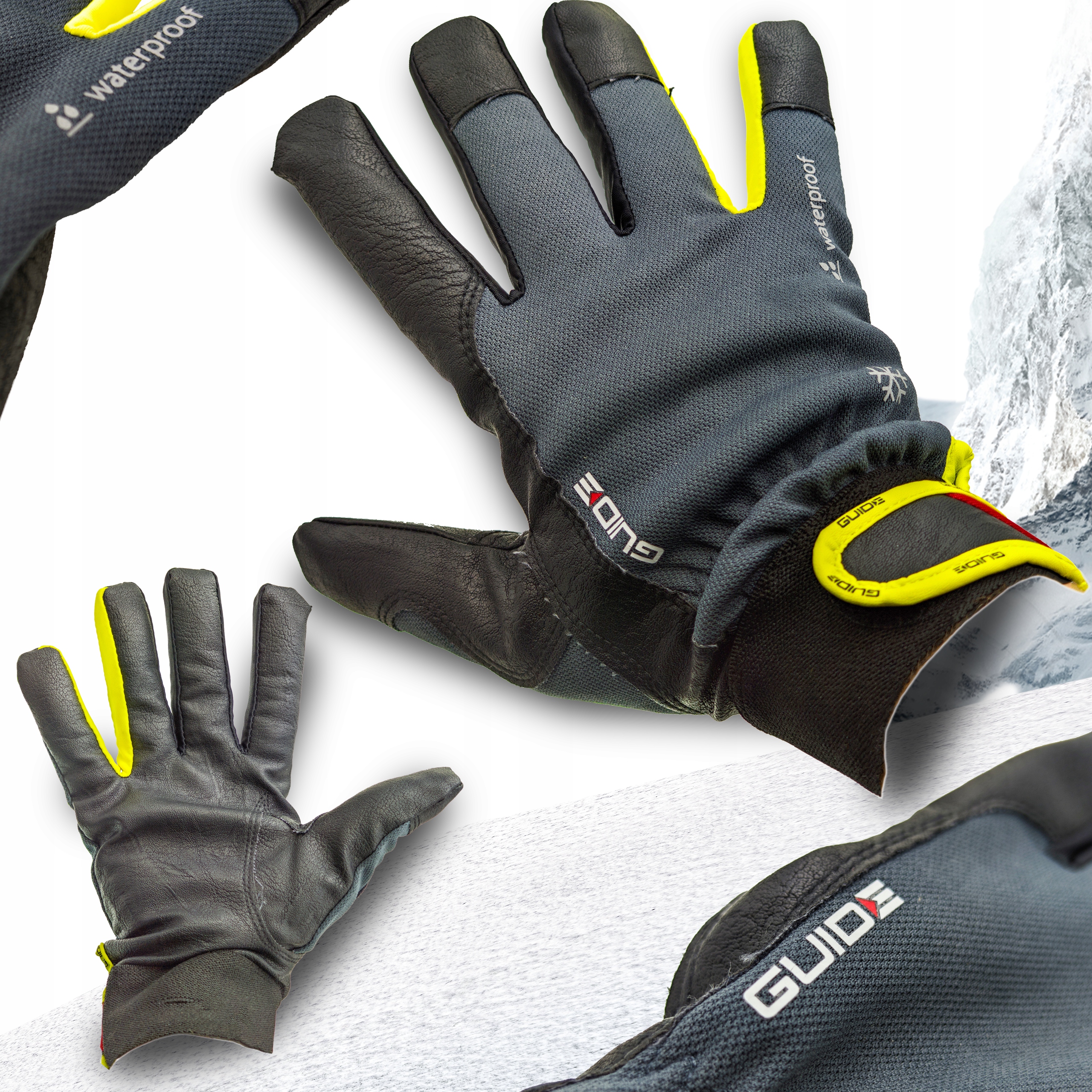 Водонепроницаемые зимние перчатки из синтетической кожи с эластичной тканью на верхней части и усиленными кончиками пальцев. Манжета легко регулируется с помощью липучки.