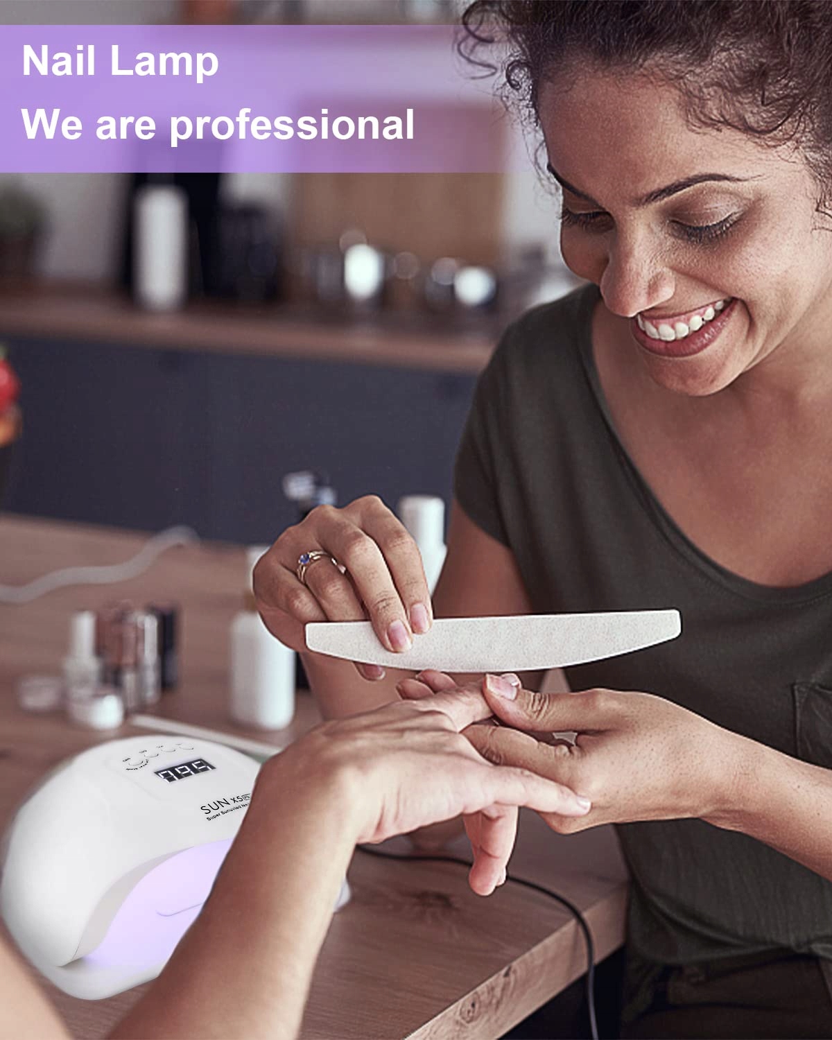 Температурная защита, безопасность в использовании: лампа для ногтей имеет встроенный чип регулирования температуры, защищает нежную кожу от потемнения или ожогов, не причиняет вреда глазам. Безупречное отверждение без мертвых зон по сравнению с обычными ламповыми шариками, состоящими из 57 частей, с полным покрытием, обеспечивающими равномерное и быстрое затвердевание ногтей. Безвредный мягкий фиолетовый свет не вредит вашим глазам и защищает кожу от черного цвета.