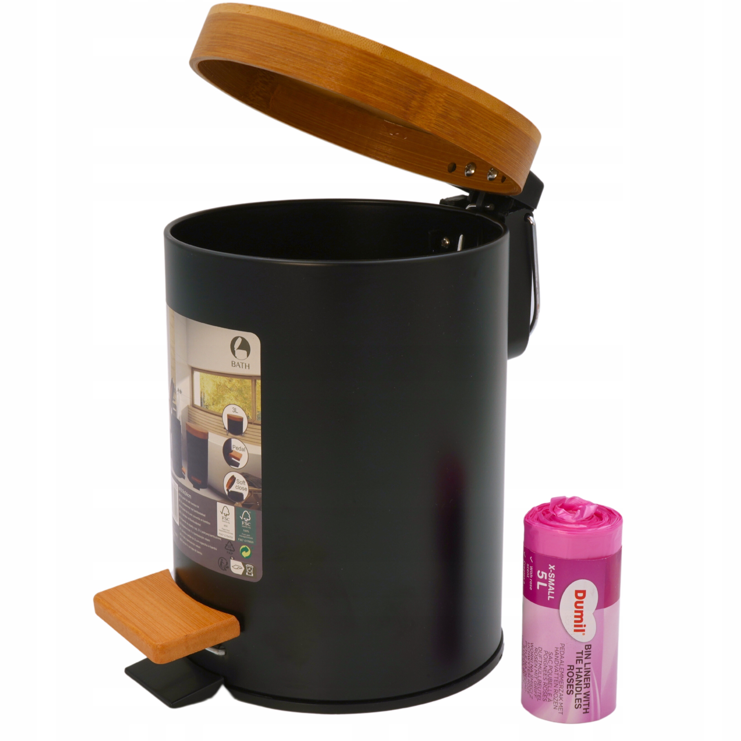 МУСОРНОЕ ВЕДРО ДЛЯ ВАННОЙ, ЧЕРНЫЙ БАМБУК, МАЛЕНЬКИЙ, 3 Л, С КРЫШКОЙ И ПЕДАЛЬЮ, БЕСПЛАТНЫЕ МЕШКИ