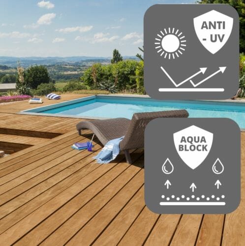- Защищает и украшает террасные поверхности из отечественных пород, таких как сосна, лиственница, ель, а также тик и экзотическая древесина.