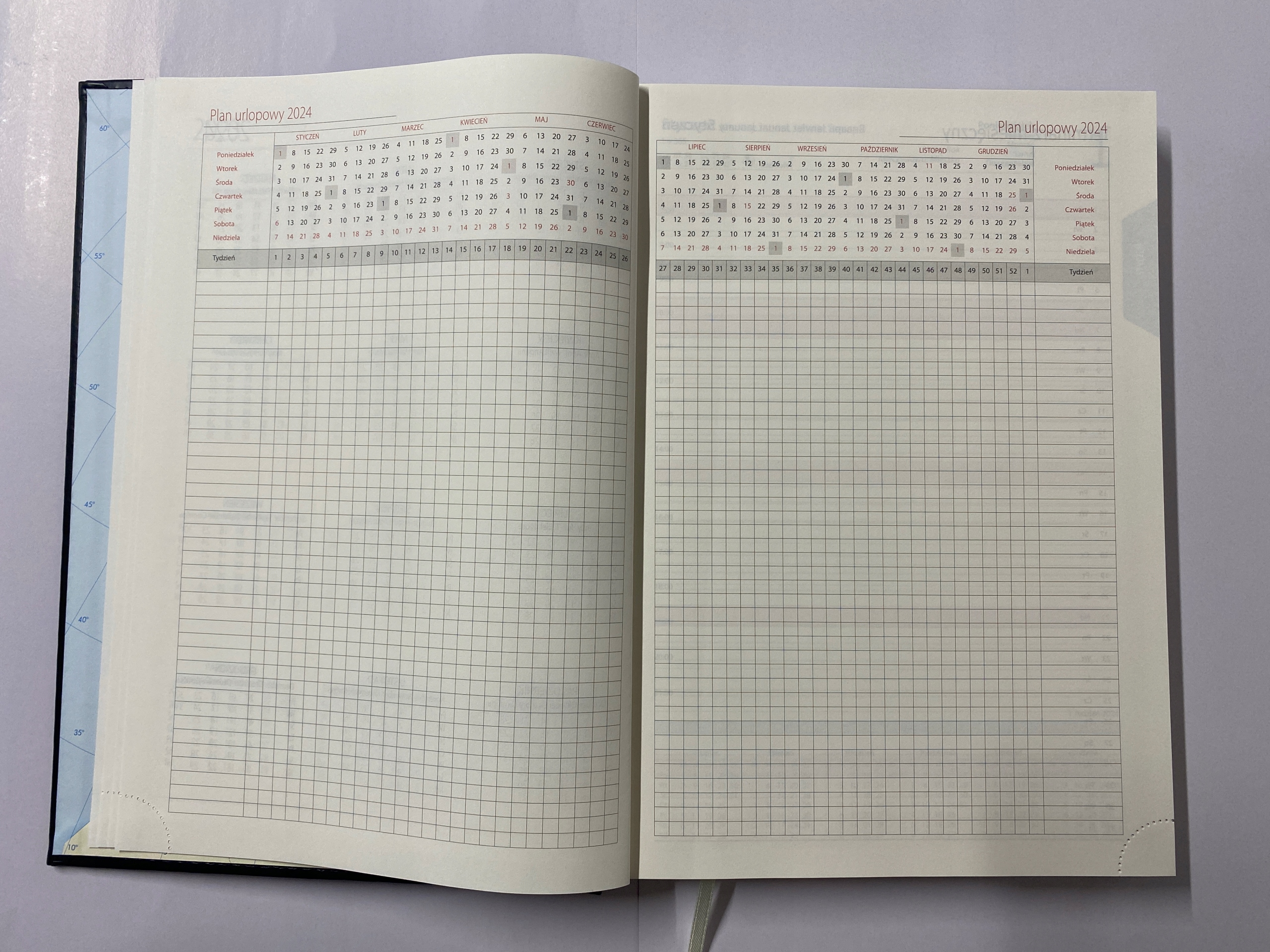 - Макет: 1 день по 1 страница, суббота и воскресенье на 1 странице, ежемесячный планировщик перед каждым месяцем.
