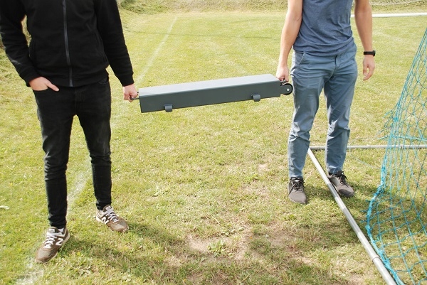 Переносной груз является идеальным решением для полей с искусственным покрытием, где нет возможности прикрепить ворота к грунту анкерными штифтами. Благодаря простоте использования можно использовать и на полях с натуральным покрытием.