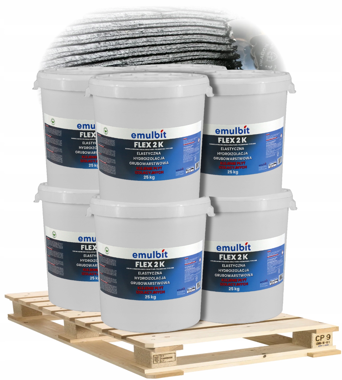 Эмульбит Флекс 2 К применяется для защиты подземных частей зданий от воды. Материал модифицирован полимерами, благодаря чему полученное покрытие после высыхания остается эластичным.