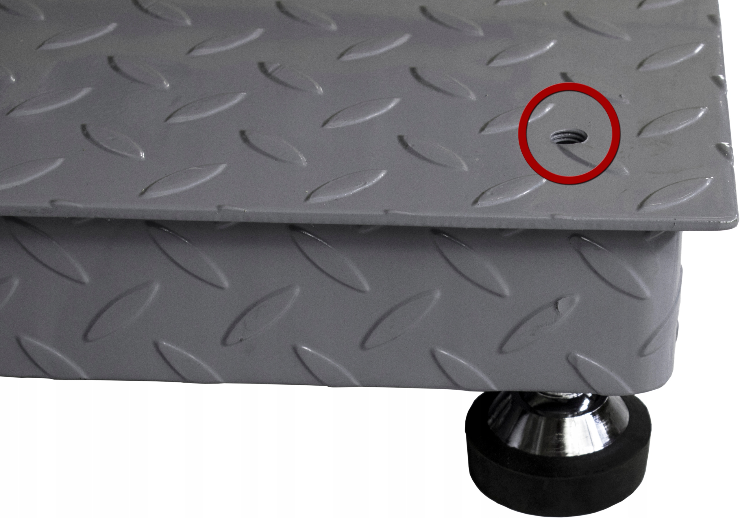 Наши платформенные весы оснащены дополнительным отверстием, позволяющим удобно и быстро выравнивать весы.