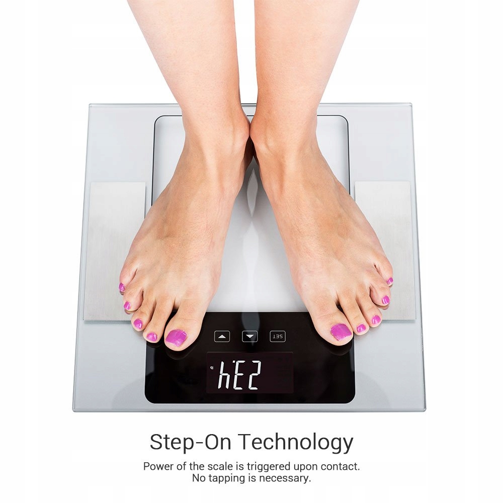 - Высокая точность - оснащена четырьмя очень точными немецкими датчиками последней версии. Он сочетает в себе расширенный алгоритм с анализом биоэлектрического импеданса (BIA). Немедленно рассчитайте вес, жир, увлажнение, мышечную массу, костную массу и ежедневную калорийность. Он также выступает в качестве удобного багажного масштаба, и вы можете легко взвесить доставку. Учебник на немецком языке (сейчас прикреплен)