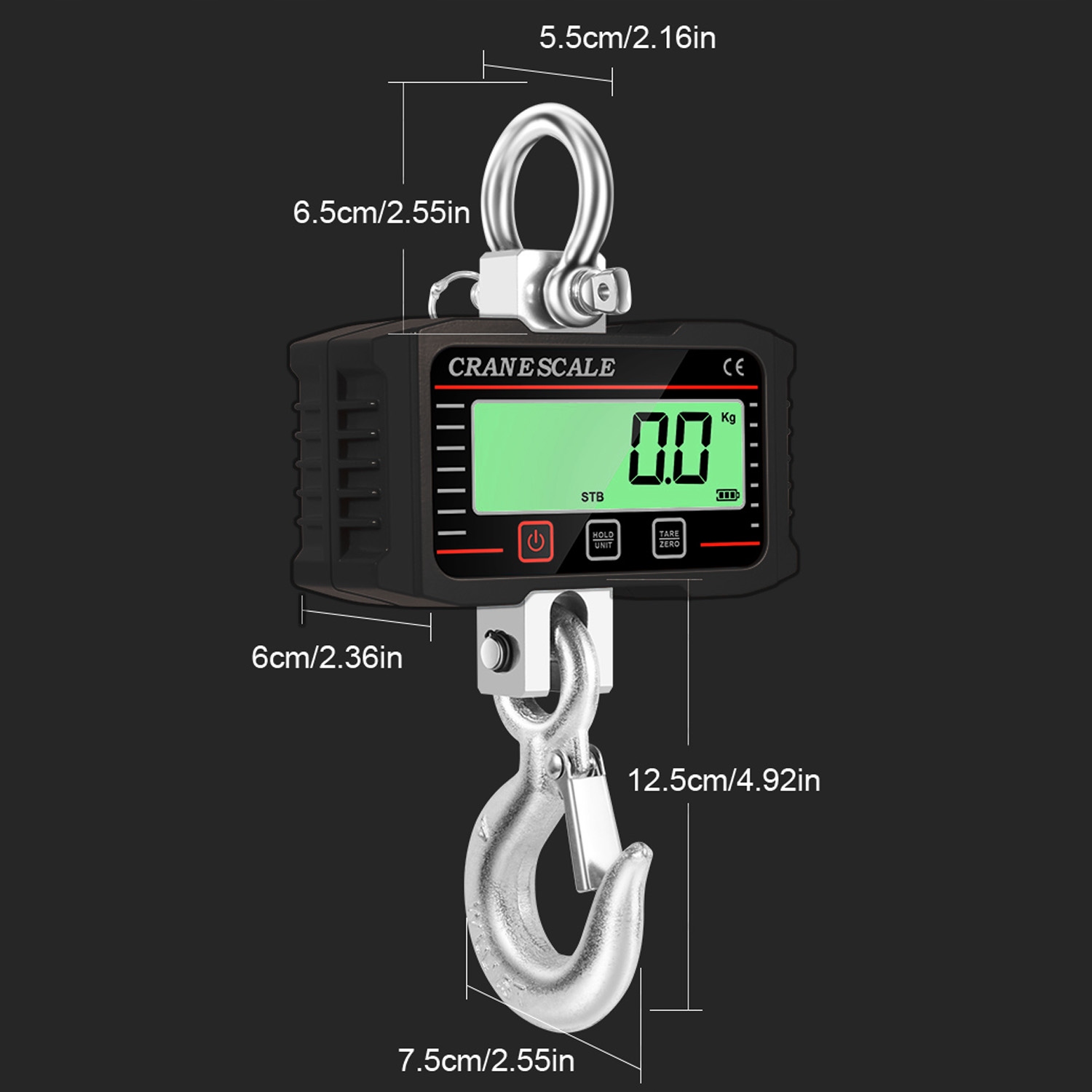 Светодиодный дисплей: крановые весы оснащены большим светодиодным дисплеем с возможностью преобразования единиц измерения, вы можете выбирать между фунтами и килограммами, а также имеют функцию предупреждения о перегрузке.