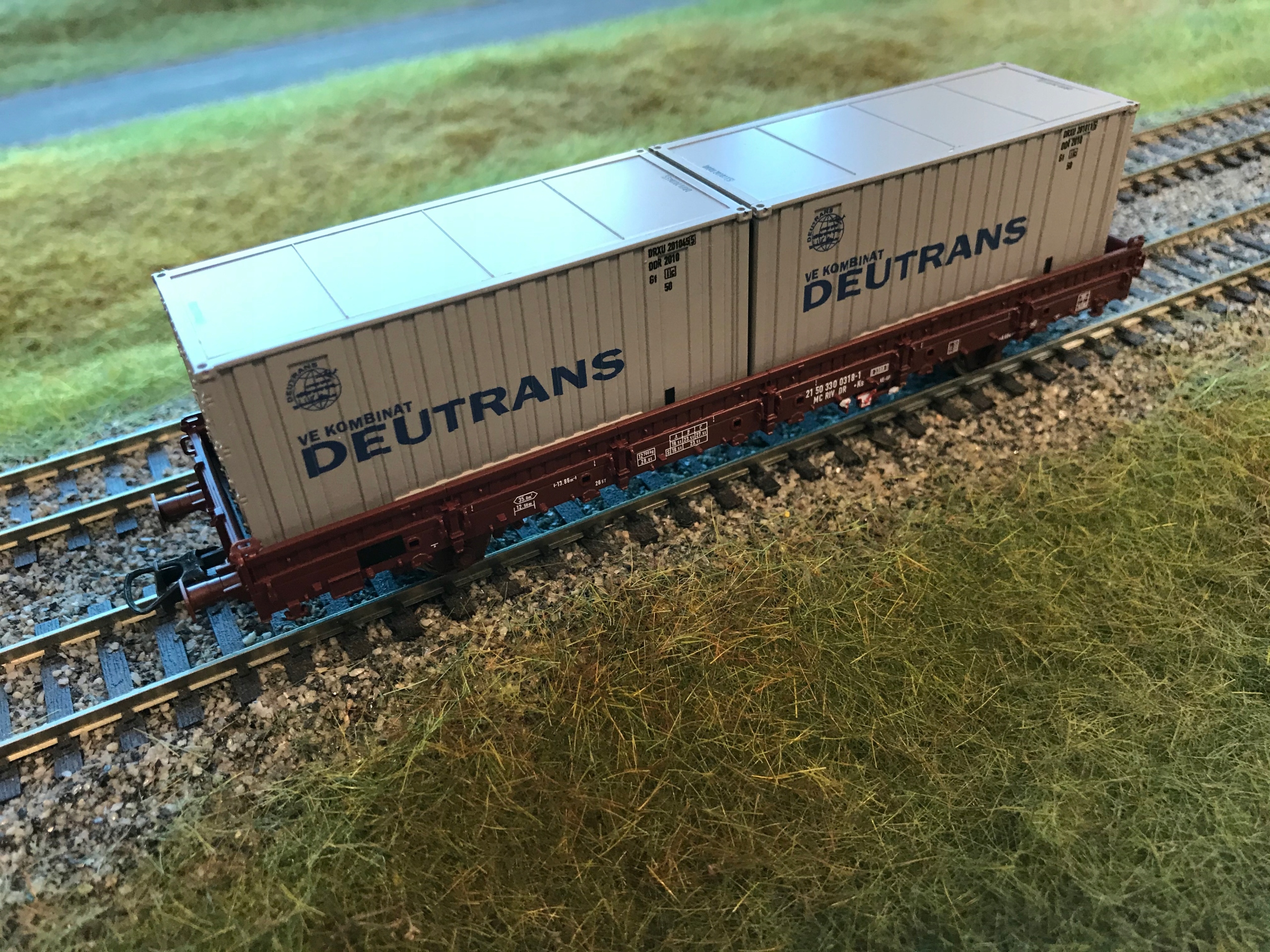 Вагон-платформа, завантажена контейнерами Roco 77675