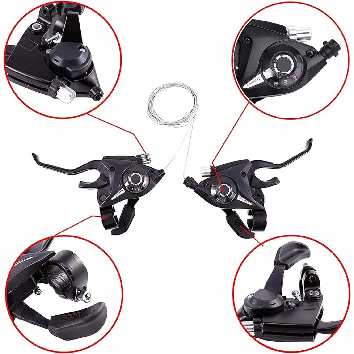 🚲 3-ступенчатое левое тормозное рычаг, 7-ступенчатый рычаг тормоза, в общей сложности 21 скорость на выбор. Тормозные рычаги, сделанные из алюминиевого сплава. Тормозные кабели из нержавеющей стали.