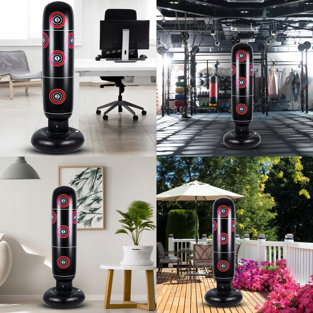 🥊🥊🥊 【Легко хранить】 155-сантиметровый мешок с песком можно использовать как внутри, так и снаружи; Его легко надуть и истощать воздух, и его можно сложить, чтобы легко хранение. Это очень удобно в использовании.