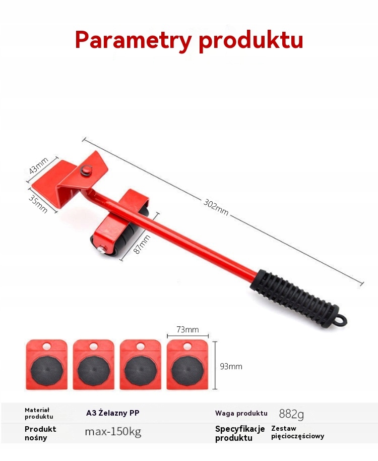 • Высокая грузоподъемность: один инструмент может поддерживать более 150 кг, что может соответствовать потребностям манипуляции большинства мебель и электрических устройств. Используется для перевозки мебели и устройств, но также может использоваться в качестве временного вспомогательного инструмента, который помогает в мебели и корректировке мебели.