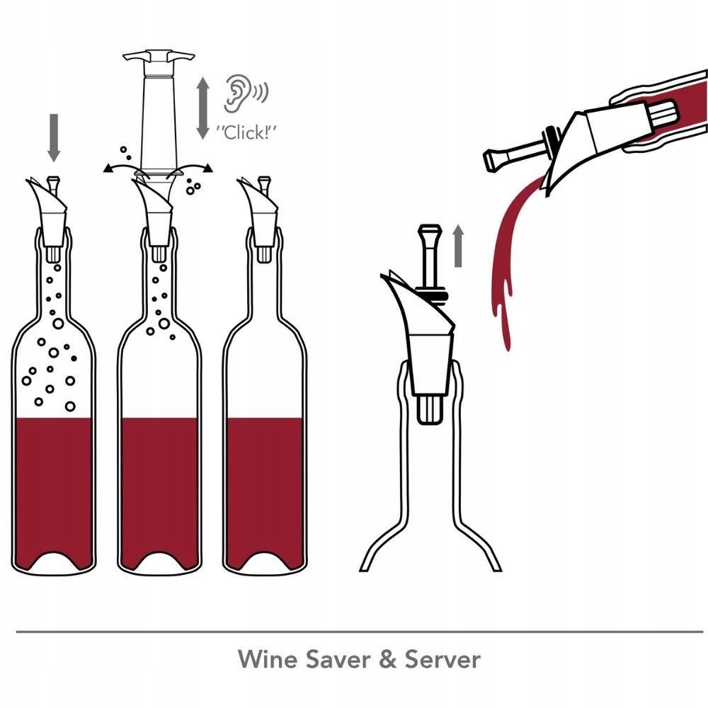 В сочетании с вакуумным насосом Saver & Server вы можете защитить открытую бутылку вина от окисления и насладиться им до десяти дней. Вытащите воздух из открытой бутылки вина с помощью нашего вакуумного насоса и закройте его снова с помощью нескольких проведжей винного сервера и стопчика. Это сигнал, что вы достигли оптимального уровня вакуума и герметической плотности. Ваша бутылка теперь готова хранить в холодильнике или на кухонной стойке.