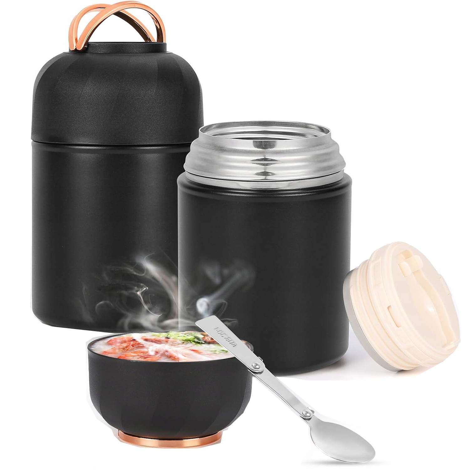 Пищевой термоконтейнер на 550 мл, термокружка из нержавеющей стали со складной ложкой, герметичный изолированный контейнер для супа (черный)