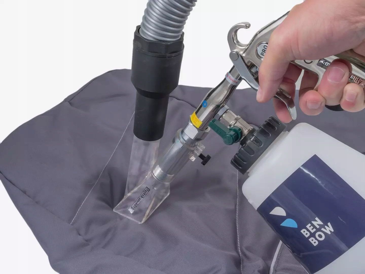 Вакуумная стиральная машина BenBow — еще одно оружие для торнадо. Тюбик с щеточкой идеально подходит для чистки материалов и пластика. В комплект также входит насадка и комплект шлангов и переходников для пылесоса, благодаря которым вы сможете выполнять отжимную мойку! Все, что вам нужно, это традиционный пылесос с возможностью сбора воды. Устройство имеет резервуар для химикатов, который под давлением подается на очищаемую поверхность. Вакуумная мойка имеет пластиковый механизм, который подает сжатый воздух и химикаты, что делает устройство еще прочнее классической версии с пластиковым шлангом.