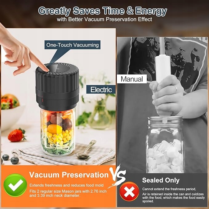 - 🎁【 Многие аксессуары, которые соответствуют требованиям для вакуумного герметиза Губы, стандартный преобразователь уплотнения во рту, 4 * широкая крышка губы масона и 4 * стандартная крышка резервуара Мейсон губы, открытие крышки, зарядка кабеля и руководство пользователя. Наш вакуумный набор для уплотнения пищи поможет вам устранить воздух из масона, чтобы продлить срок службы сохраненной пищи. Во -первых, определите и укажите, выберите подходящее вакуумное уплотнительное устройство. Затем убедитесь, что электрический вакуумный уплотнительный аппарат центрируется и сильно нажимает, вставьте его в крышку банки, нажмите кнопку, чтобы запустить вакуумный насос в течение 40 секунд или дольше, и воздух может быть перекачен в зону уплотнения, чтобы добраться до консервации Отпуск. сварочная машина. удобно для хранения. Вручившись на открытый пикник, вам не нужно носить громоздкий традиционный ручной вакуумный насос, все, что вам нужно сделать, это использовать нашу электрическую вакуумную машину, чтобы облегчить его