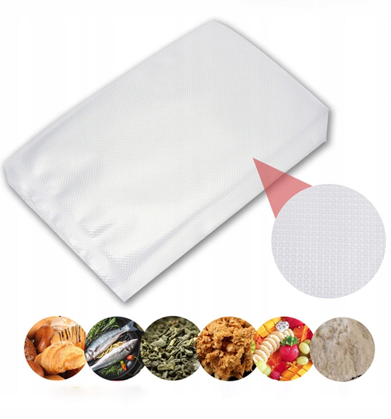 - Фольга имеет накатку - ее поверхность имеет специальное тиснение, которое облегчает всасывание воздуха и предотвращает прилипание продуктов к внутренней части рукавов.< /li>