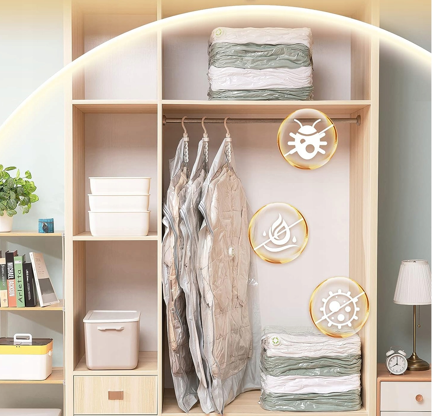 Благодаря им вы сэкономите место, а также обеспечите защиту ваших вещей от влаги, пыли и насекомых.