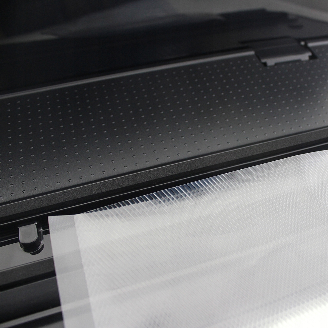 Вы можете выбрать, используете ли вы обе эти функции одну за другой, или если вы плотно закрываете мешок, не высасывая воздух. Максимальная мощность всасывания в минуту составляет 12 л. Линия сварки длиной 30 см, но мы рекомендуем использовать сумки, не шире, чем 28 см.