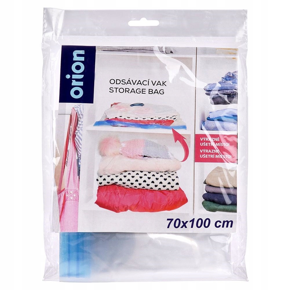 Вакуумный мешок для хранения одежды, игрушек или дополнительных постельных принадлежностей. Это позволит вам получить больше места при хранении одежды и постельного текстиля. Пакеты защитят хранящиеся продукты от пыли, грязи, клещей и моли. Чрезвычайно прост в использовании. Наполнив сумку вещами, засасываем воздух с помощью пылесоса или всасывающего насоса, благодаря чему уменьшаем объем сумки и получаем пространство. Оригинальный продукт чешского бренда Orion. Произведен в соответствии с европейскими стандартами.