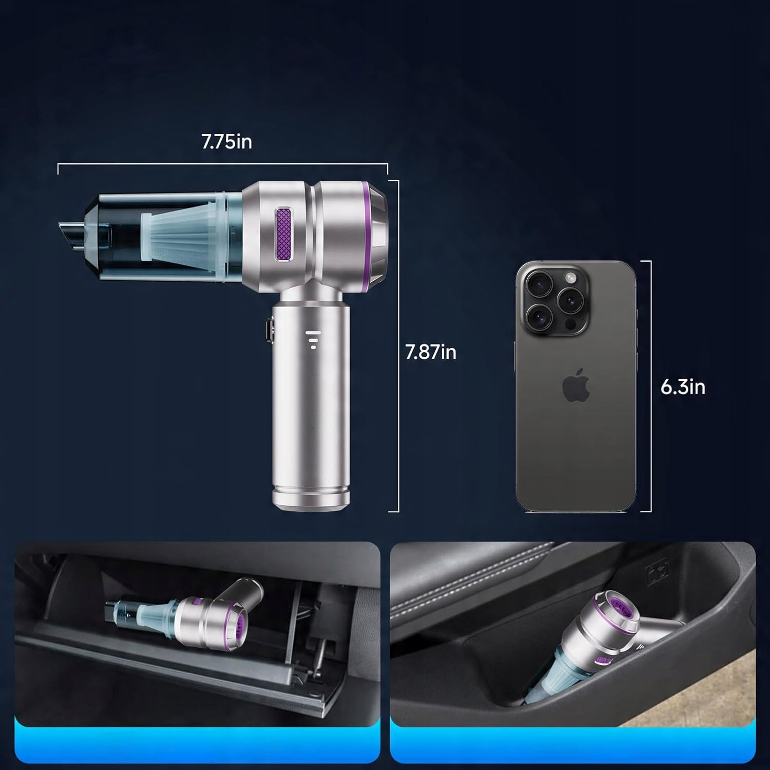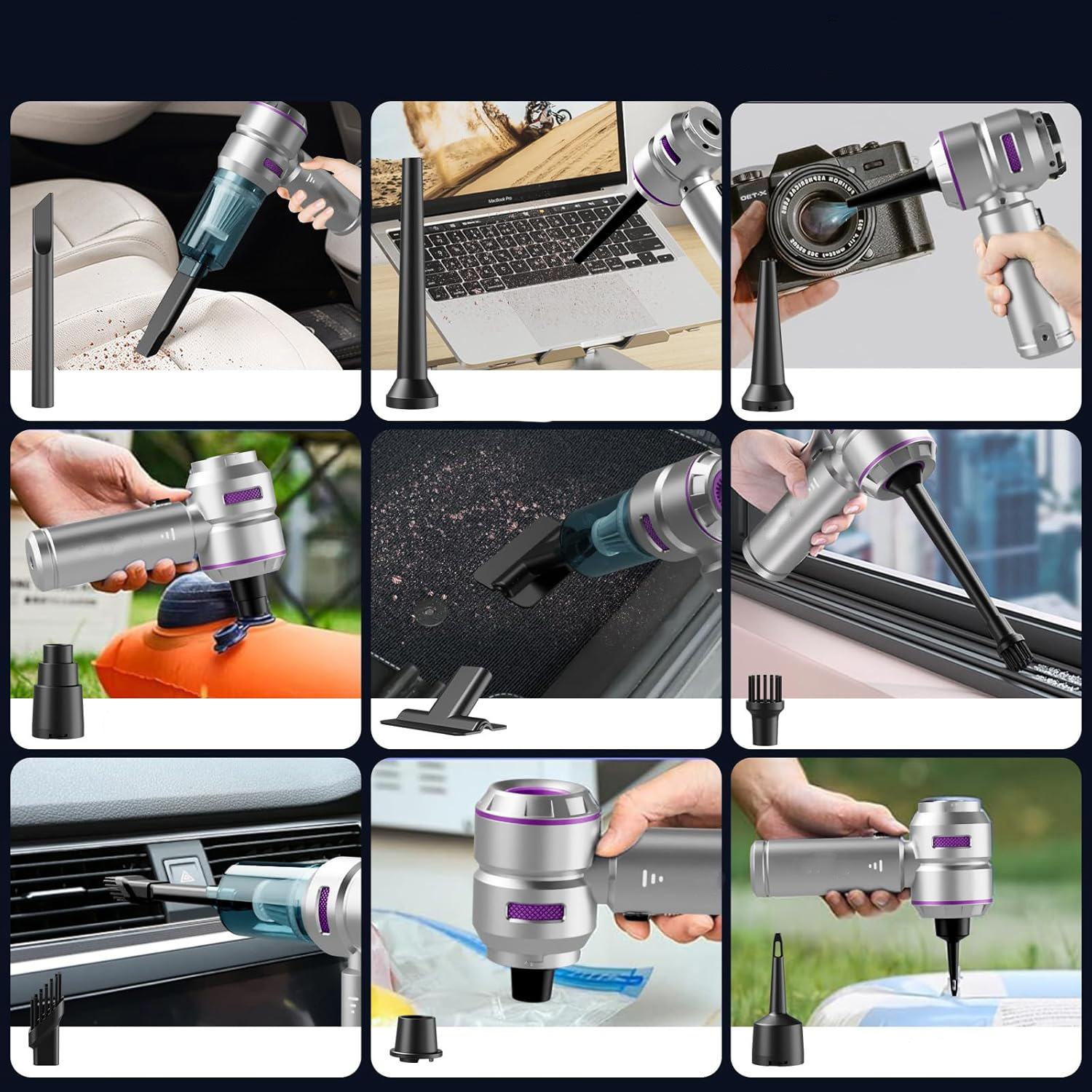 Многофункциональный мини -вакуумный очиститель 3 в 1 : беспроводной ручной пылесос со многими аксессуарами, обеспечивая продувание, пылесос и сбор пыли . можно использовать не только в качестве пылесоса для очистки внутренних дел дома и автомобиля, но и в качестве опрыскивания сжатого воздуха и вакуумного компрессора. Чтобы получить доступ к местам, а также удалять кухонную пыль, грязь и волосы животных с одной большой кистью, благодаря которой живая среда выглядит как новый